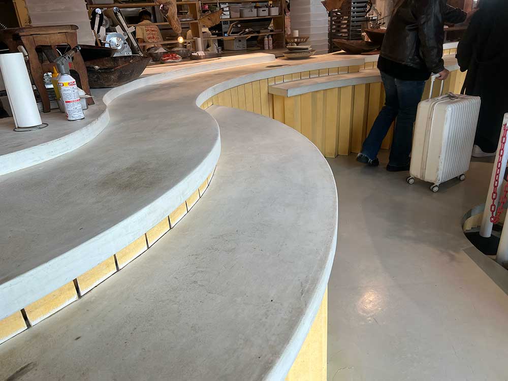店内はパン屋というより、おしゃれなカフェのような雰囲気。カウンターのデザインやディスプレイも素敵で、パンを選ぶ時間も楽しい空間でした。