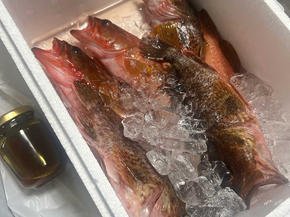 釣れた魚は丸徳水産さんで下処理をお願いし、持ち帰り。こんな感じで別途で詰めてもらえます。そのうちの大きな2匹は、前回と同じく「肴やえん」さんに持ち込み、調理してもらいます。