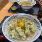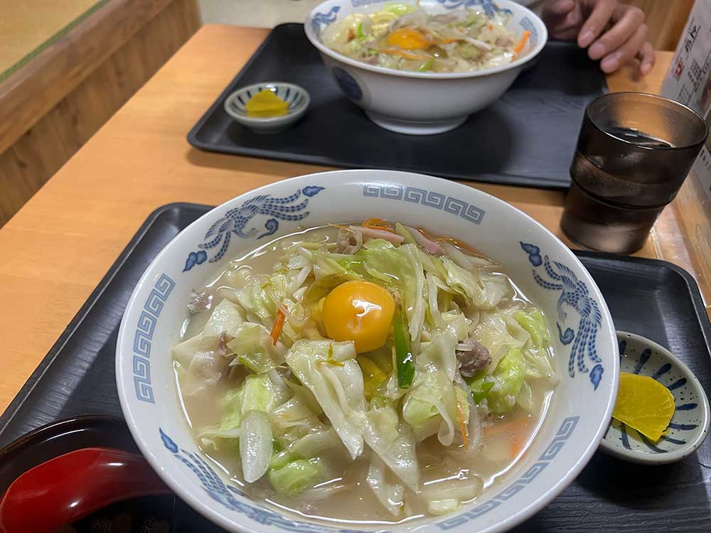 ちゃんぽんの上には生卵がトッピングされており、スープにまろやかさをプラス。