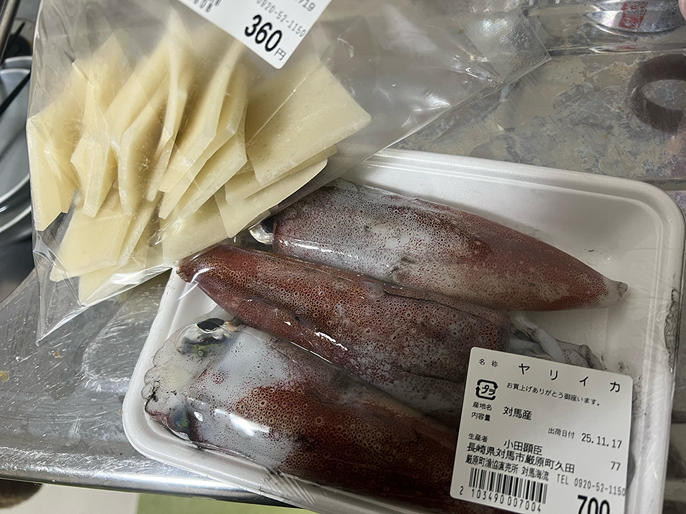 この日は、薄く切られたお餅とヤリイカを購入しました。