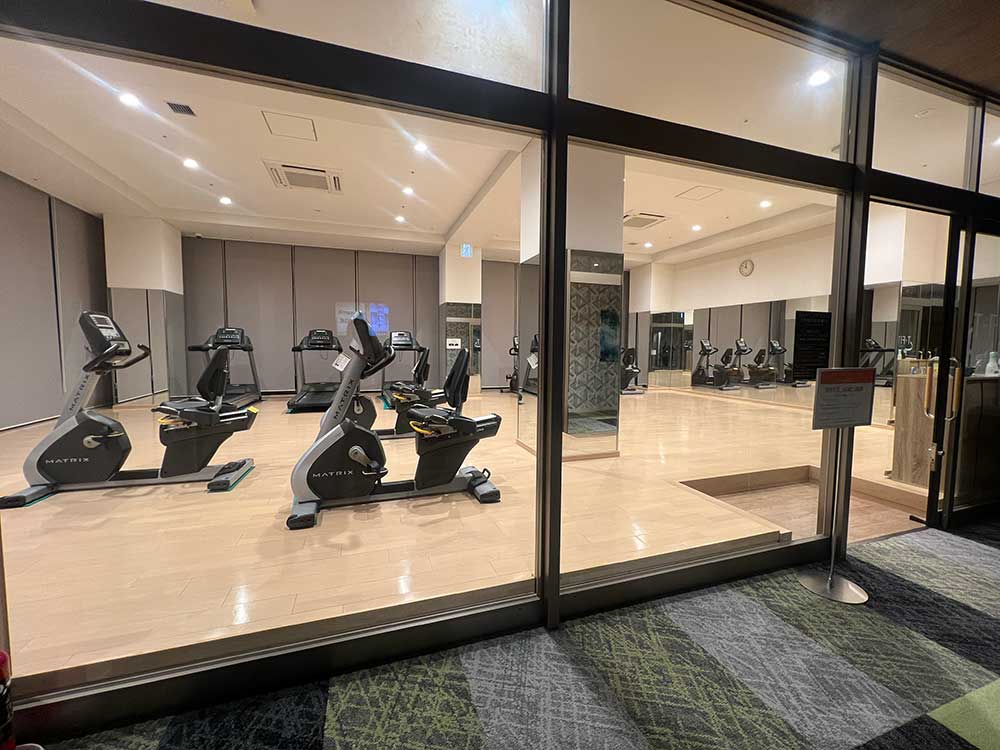 同じフロアには綺麗なフィットネスエリアがあるのが嬉しいポイント。食後に軽くストレッチとウォーキングをしました。
